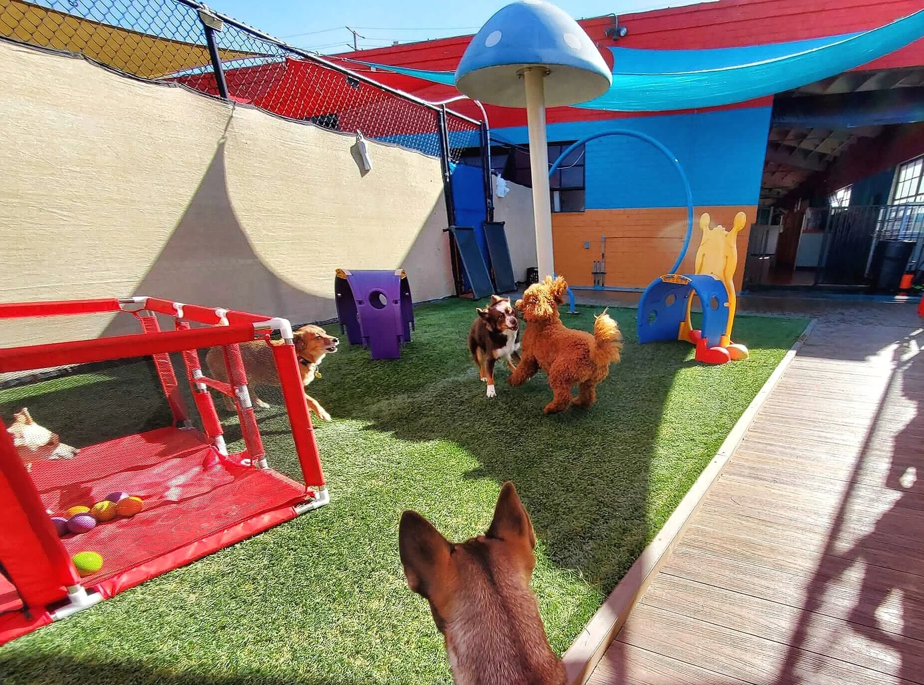 At South Park Doggie Resorts, we believe in the power of learning through play. Our PLAYCARE PAWCADEMY offers a variety of enrichment activities, such as swim lessons, agility training, and puzzle exercises. We provide quarterly grading and achievement certificates to track your dog's progress and development.